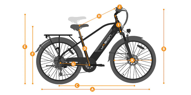 The Jasion EB5 is suitable for riders with a height range of 155 cm to 190 cm (5'1" to 6'3").